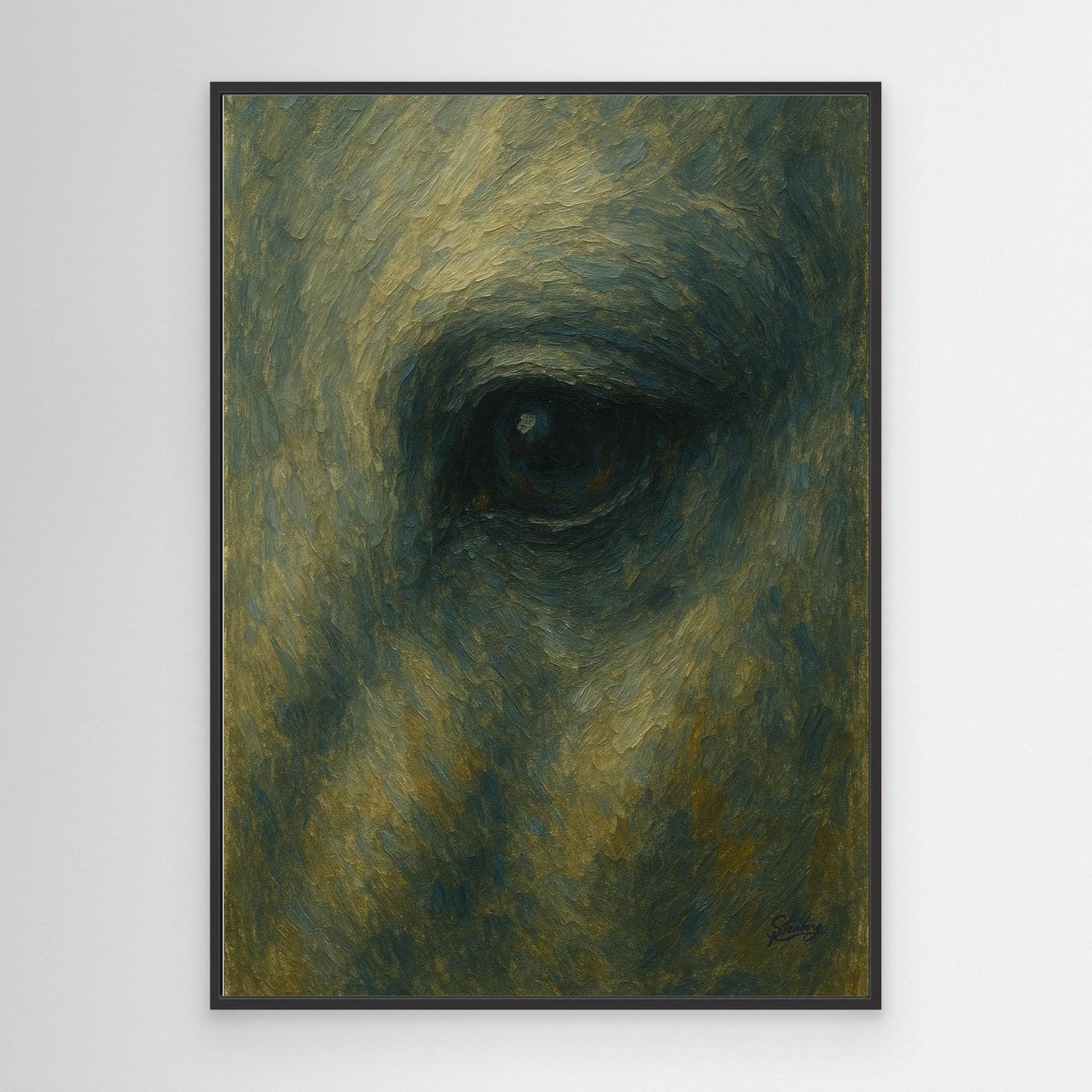 The close-up perspective creates an immediate connection between viewer and subject, making this piece a captivating centrepiece for any room. With its muted tones and painterly depth, “Spirit in the Eye” fits seamlessly into modern, rustic, Scandinavian, or equestrian-inspired interiors.