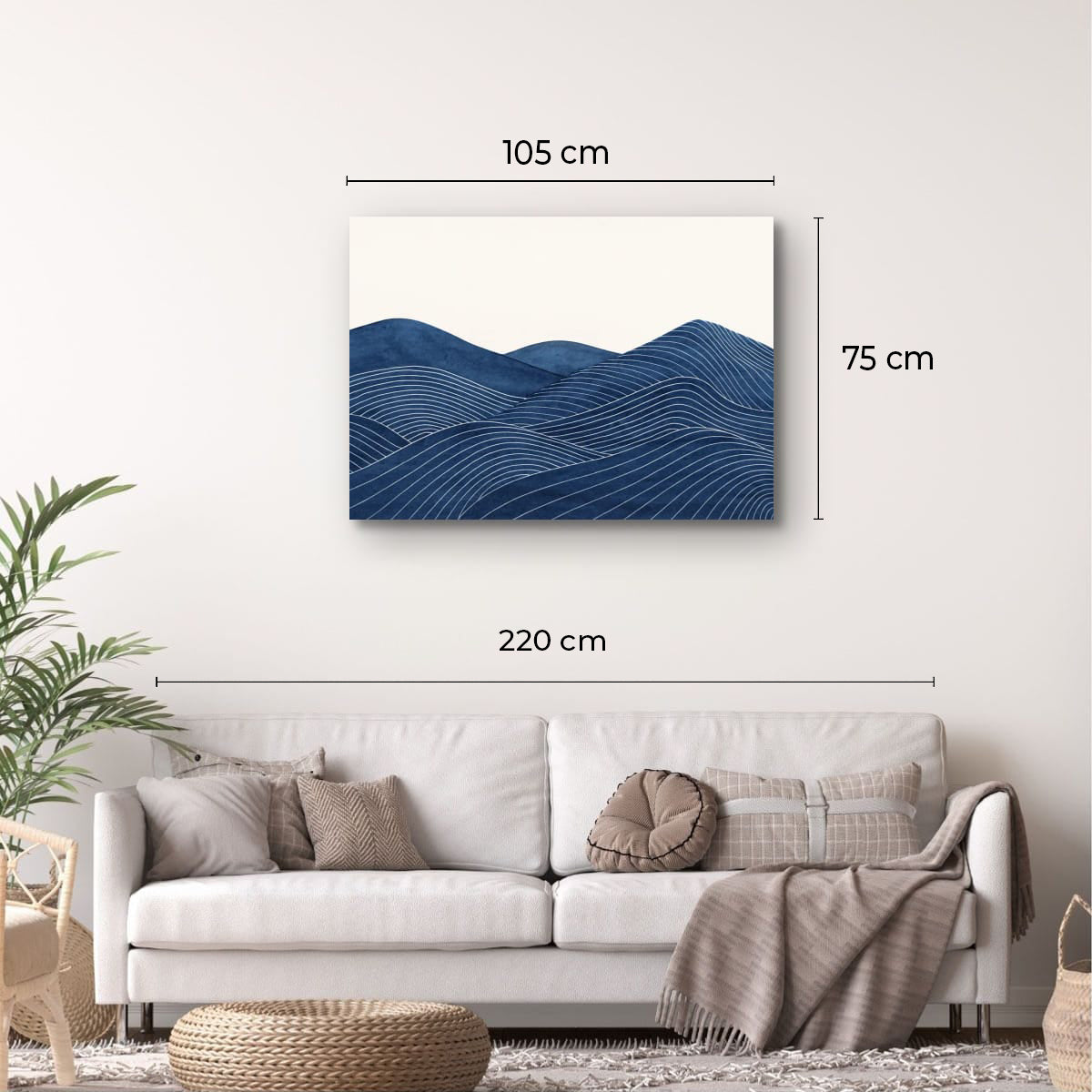 This artwork presents a serene landscape of undulating waves, rendered in deep blue tones that evoke a sense of calm. The gentle lines that traverse the surface create a rhythmic flow, inviting contemplation and tranquility. The minimalist background enhances the depth of the waves, allowing the viewer to appreciate the artistry in its simplicity. This piece embodies a harmonious balance between abstraction and nature, making it a perfect addition to any space seeking a touch of elegance and peace.