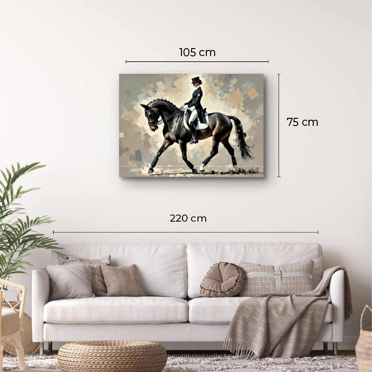 The Art of Dressage is an elegant equestrian canvas print showcasing the harmony between rider and horse in the refined discipline of classical dressage. With bold strokes and a modern abstract background, the artwork captures both precision and grace—hallmarks of this timeless sport.